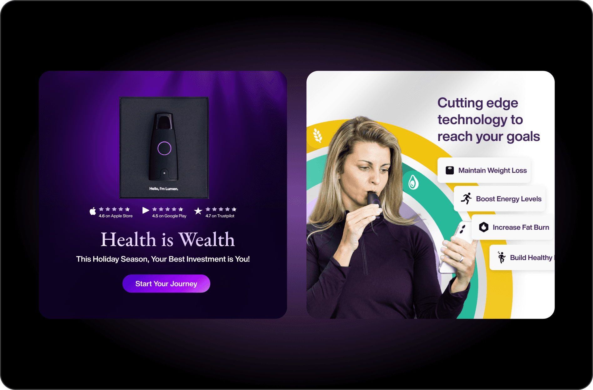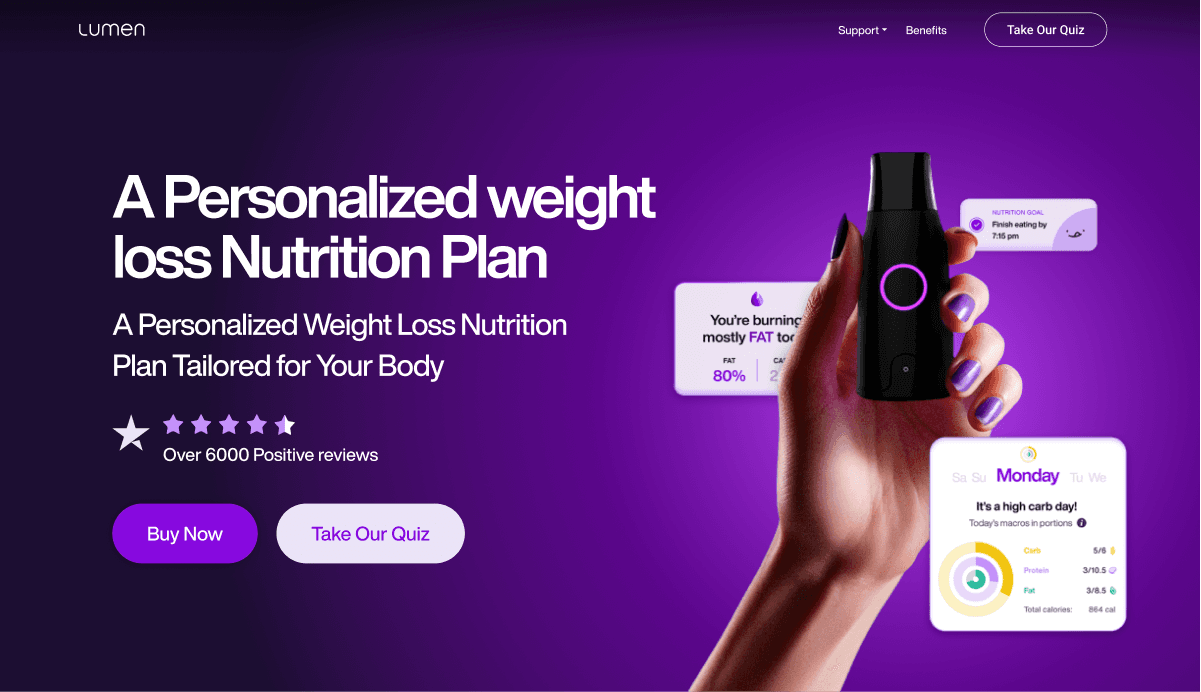 Lumen is a portable device that measures metabolism by tracking the Respiratory Exchange Ratio (RER) through a unique breath maneuver. It provides personalized nutrition recommendations, daily guidance on sleep, diet, and exercise, and a Lumen Flex Score to reflect metabolic health. The device analyzes the CO2 concentration in your breath to determine your body's fuel source (carbs or fats) and offers actionable insights based on this data. Lumen is designed to help individuals understand how their body processes food in order to achieve fitness and weight loss goals. It is available as a subscription service with different pricing plans and comes with a smartphone app for tracking and guidance.